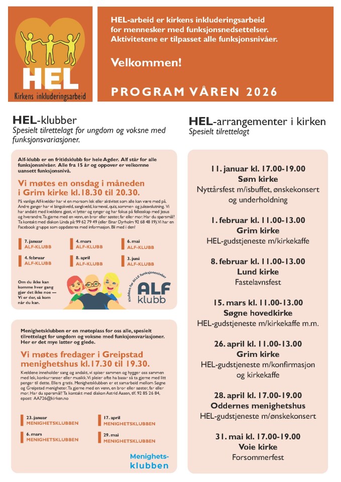 Det finnes masse bra program i kirkene i Stor-Kristiansand tilrettelagt for personer med funksjonsvariasjoner! Sjekk ut plakaten for program rundt forbi!